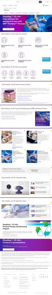 This was a project working with my team’s marketing strategists as stakeholders, who needed to create a centralized place where surgeons of various specialties could gain knowledge about how our products could help their patients. We also included ways to get in touch with a sales representative. The project consists of a home page and five specialty pages. Surgeons can view testimonials, brochures, application videos, and links to related pages. Here, we will focus on the home page and one specialty page as an example.