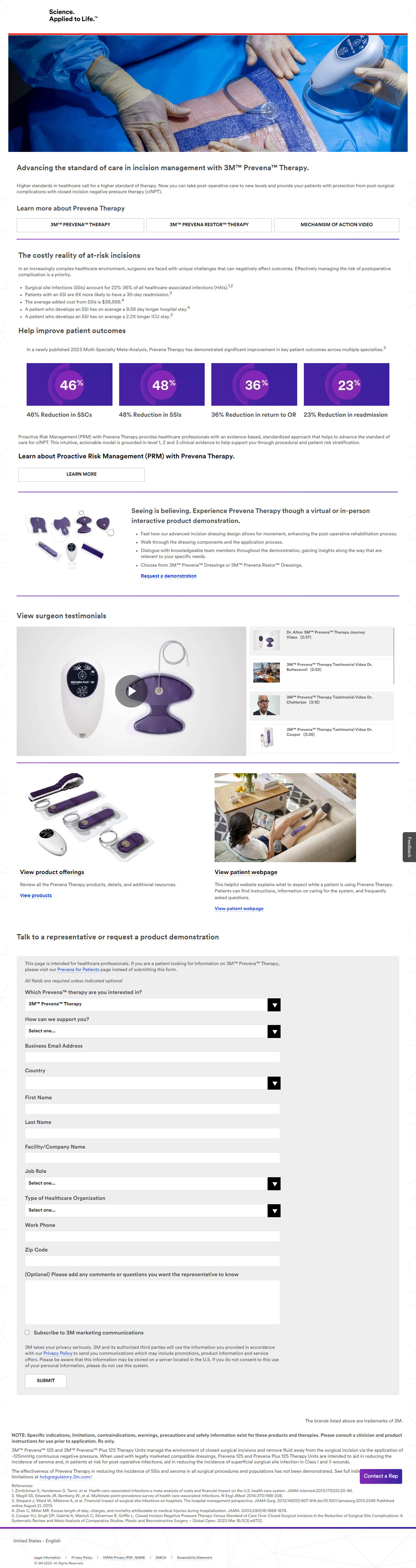 The stakeholders for this project, my team’s marketing strategists, use landing pages for marketing campaigns for our surgical incision management devices, which are designed to help patients recover from surgery. The goal of the landing pages is to generate sales leads by getting users to fill out forms on the page and provide us with their contact info, the type of work they do, and type of product they need.