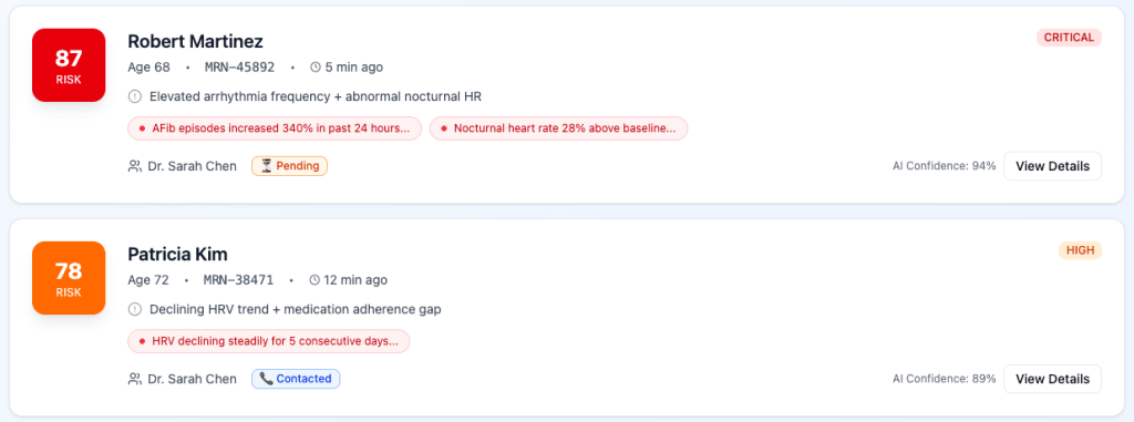 Instead of presenting raw data alone, ZentriPulse transforms complexity into prioritized clinical insight.